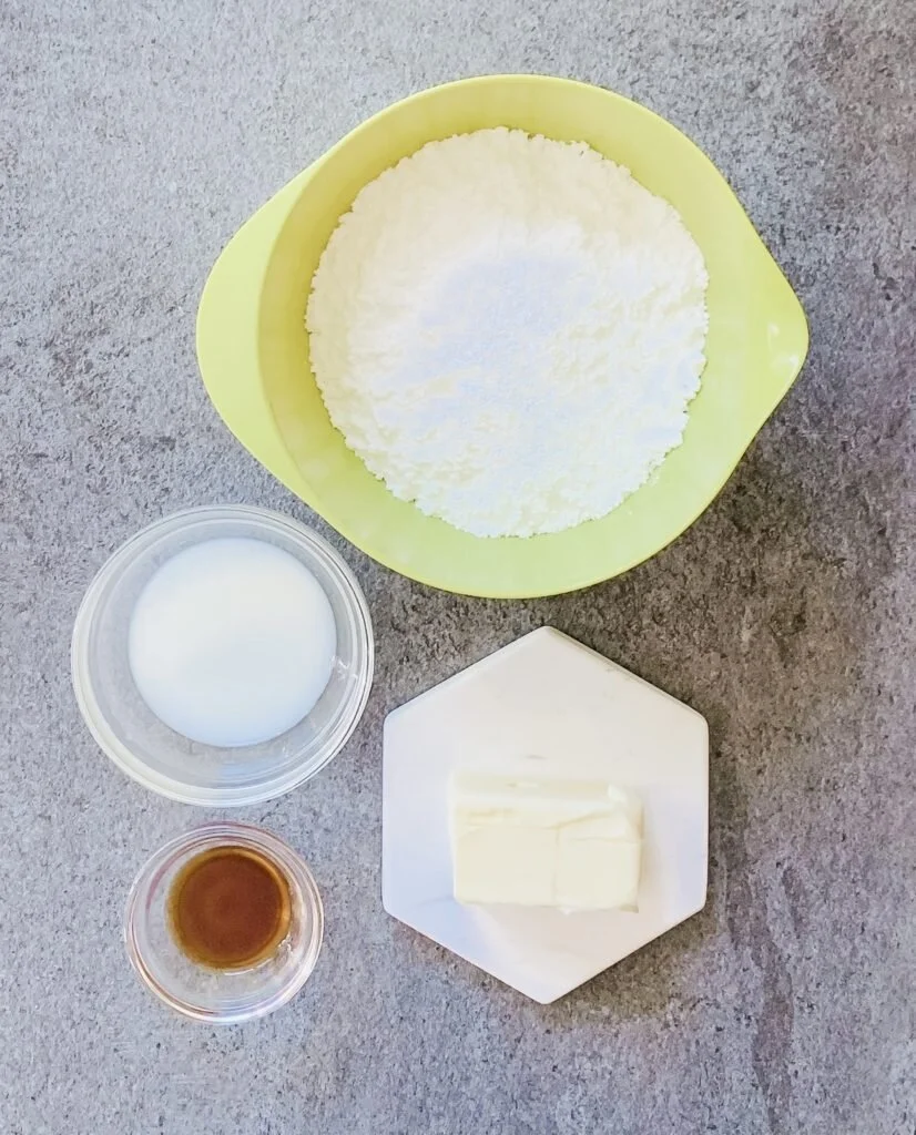 - While the cupcakes are cooling, prepare the frosting. Add butter and vanilla to a medium bowl. Using a hand held mixer or stand mixer fitted with a paddle attachment, mix the butter and vanilla on low speed until well blended. Add the confectioners sugar into the the bowl and mix until the frosting starts to form. Add 1 tbsp of milk or cream and mix on low speed until a smooth frosting forms. If you prefer a thinner consistency, add milk or cream 1 tsp at a time, until desired frosting consistency is reached. Cover the bowl with plastic wrap or a lid and set aside. Once the cupcakes, spread frosting evenly onto the tops of the cupcakes. Store frosted cupcakes in an airtight container.