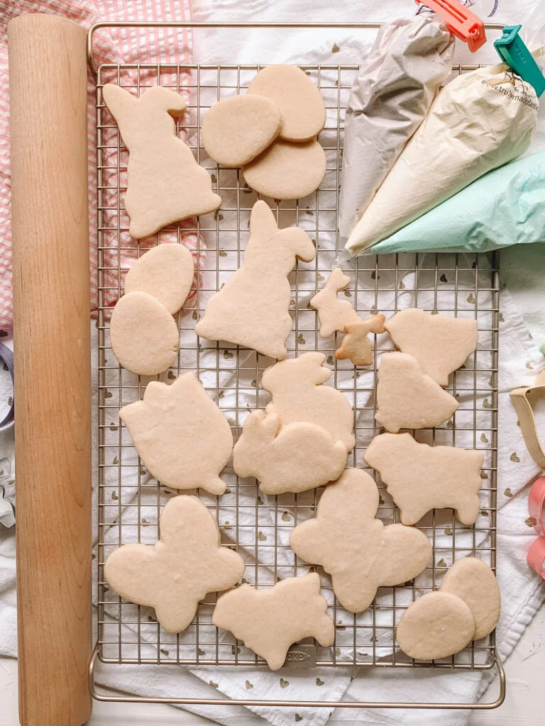 See the pictures above for some of my favorite tools. Cookie decorating can be time consuming, which is a great thing if you have kiddos at home and you are looking for an entertaining project. A plus side to this project is you can easily leave and come back to it between the decorating steps.