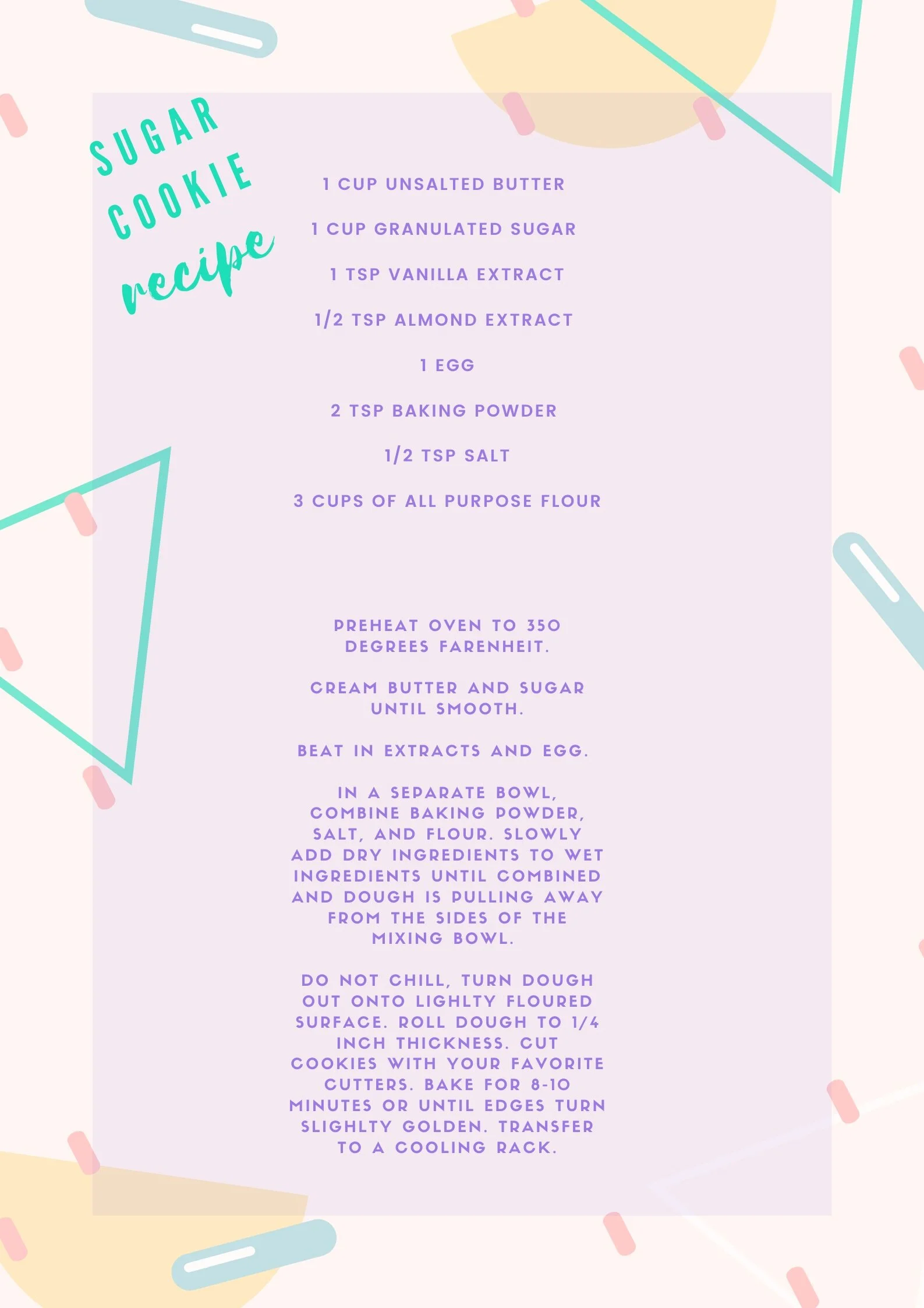 INGREDIENTS TO MAKE COOKIES AND ICING