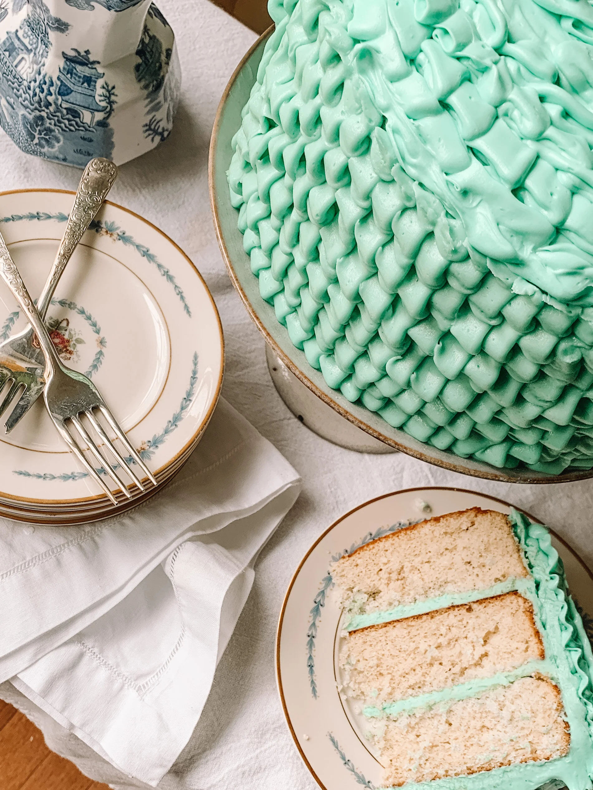 Now that your cake layers are cool (or maybe even cold if you had time to refrigerate them), it’s time to ice your cake. When I am working on cakes for photo or video shoots, I often use canned icing. BUT, if I am making cakes for my family and friends at home, I make homemade icing. I LOVE icing and always have. Jump to the end of this post for a simple, decadent buttercream recipe. This recipe will make enough buttercream to ice your big, beautiful layer cake.