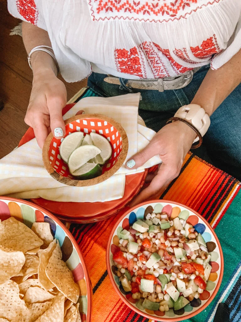 Introducing southwest confetti salsa, pass the tortilla chips PLEASE! This salsa is packed with a delicious blend of veggies (mostly fresh, some canned) and FLAVOR. Avocados, sweet white corn, and black eyed peas are the stars in this salsa show. This salsa is simple to make: a chop-and-chill recipe. If you choose to make this recipe with fresh white corn instead of canned corn, one additional step is added. Keep reading to see how I made it!