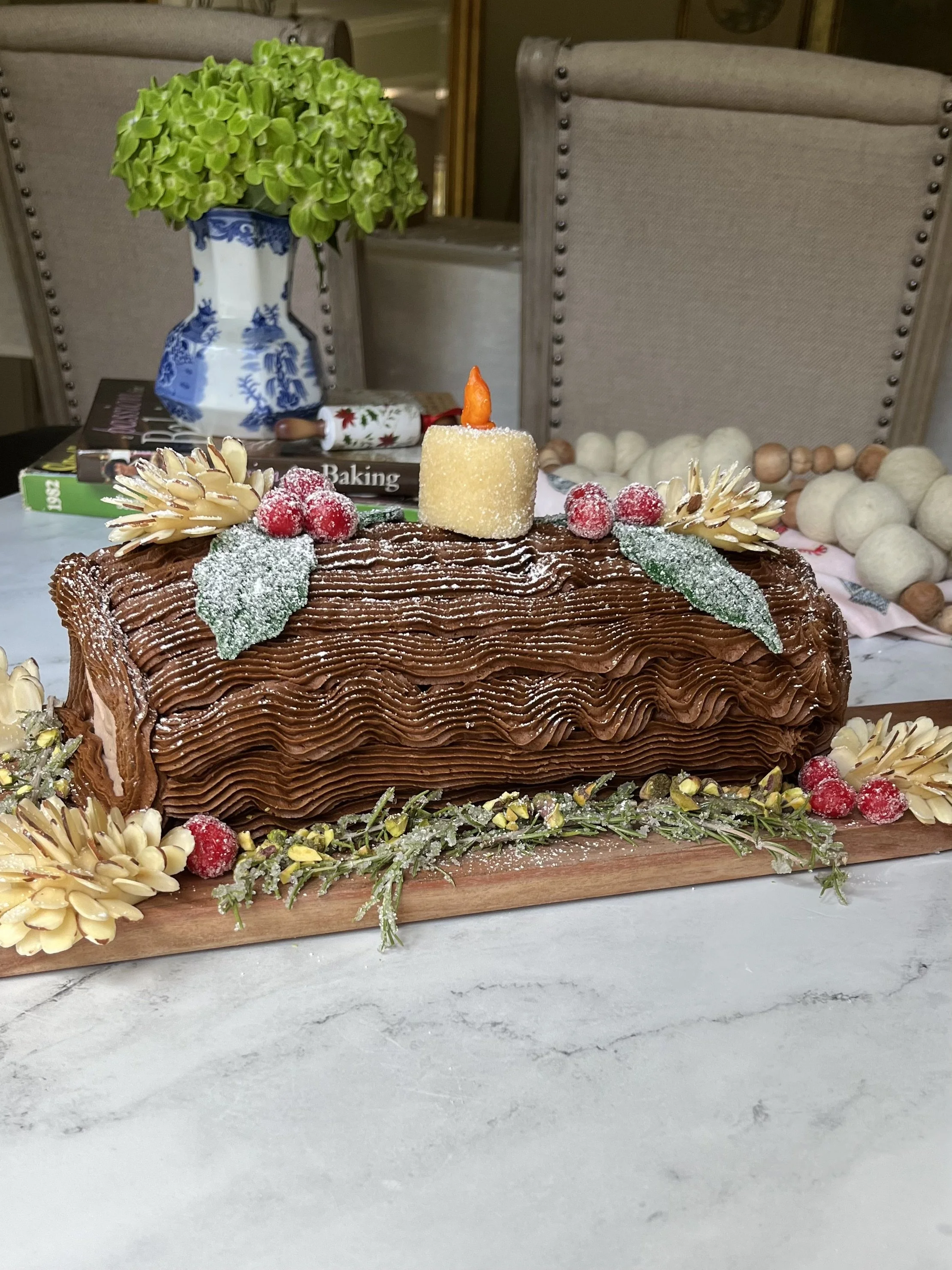 If you weren’t able to catch the first episode of Baked with Love: Holiday, you can stream it now on Hallmark+. I’ve included the recipe for our red velvet Yule log cake below. Thanks for stopping by!